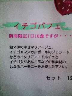 とりあえず写メったさ。伊和(強調)イチゴパフェめちゃうまかった!